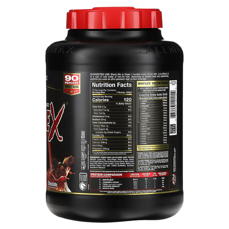 With 27 grams of fast-digesting protein per serving, Allmax Isoflex helps stimulate muscle protein synthesis, promoting muscle gain without unwanted fat or carbs.