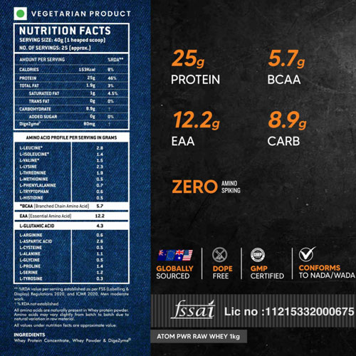 ATOM PWR uses high-quality whey with excellent bioavailability — meaning your body absorbs and utilizes it more efficiently than many other protein sources. For athletes, this translates to better recovery, faster growth, and improved performance.