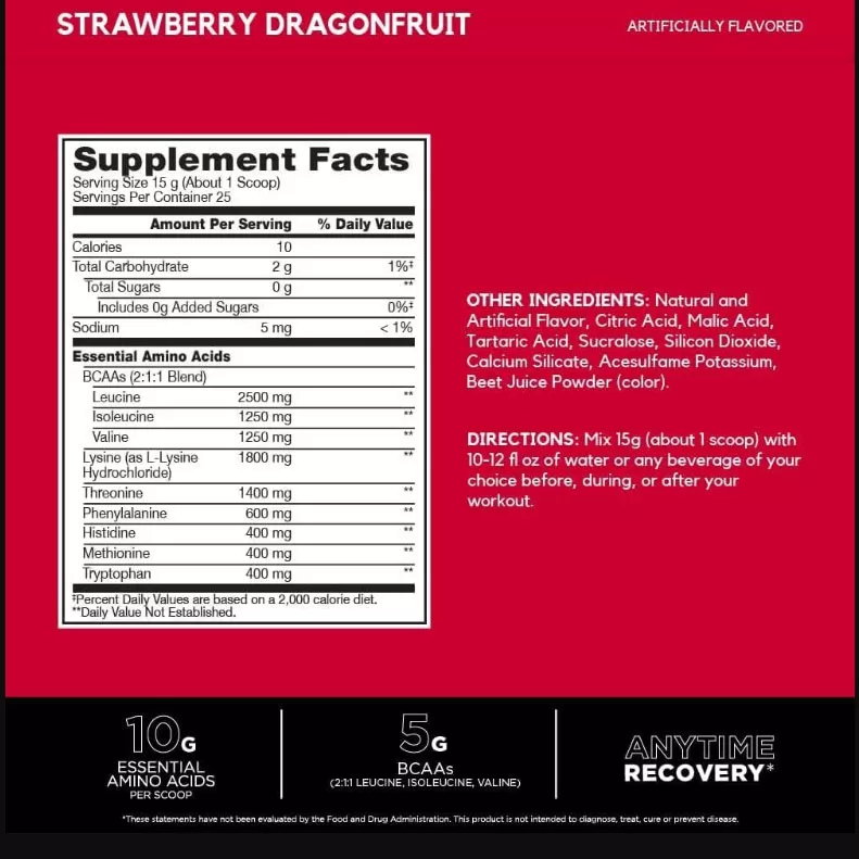Can be taken pre-workout, intra-workout, post-workout, or anytime during the day to keep amino acid levels high.
