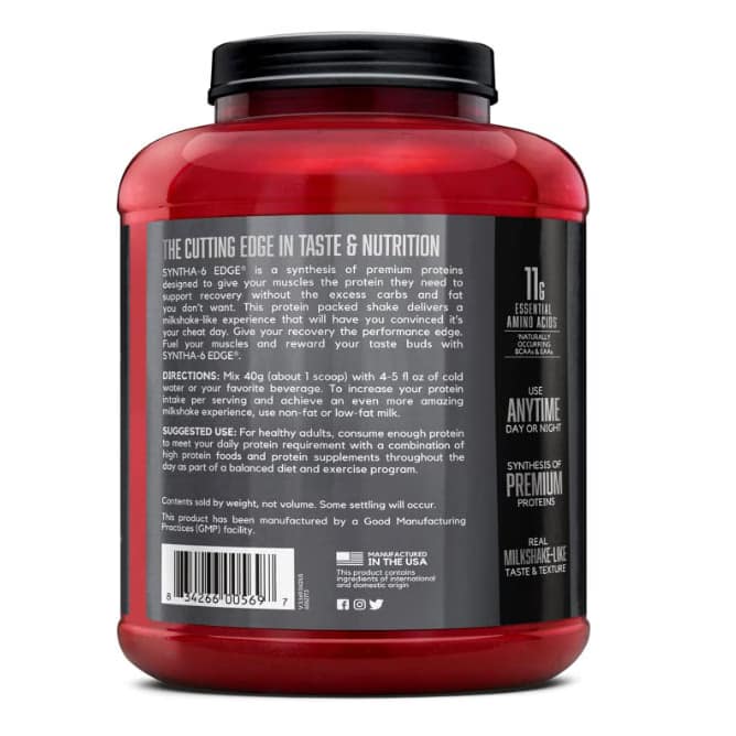 Unlike the original Syntha-6, EDGE focuses on leaner macros with higher protein per serving and minimal sugar and fat. The isolate-based formula ensures rapid absorption, making it ideal for post-workout recovery or anytime clean protein intake.