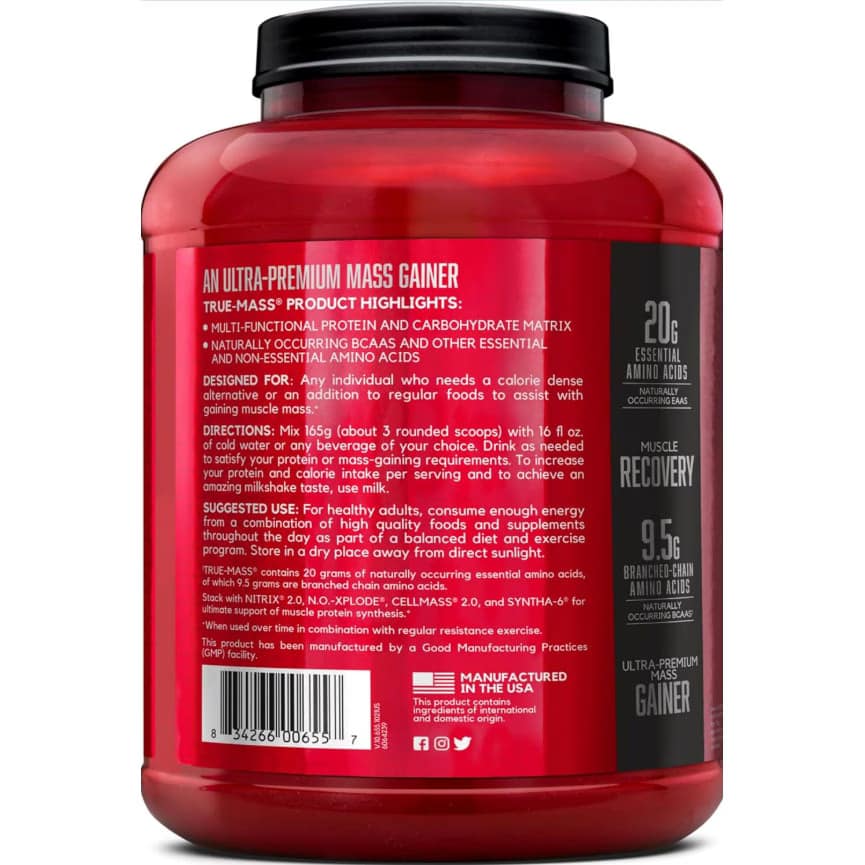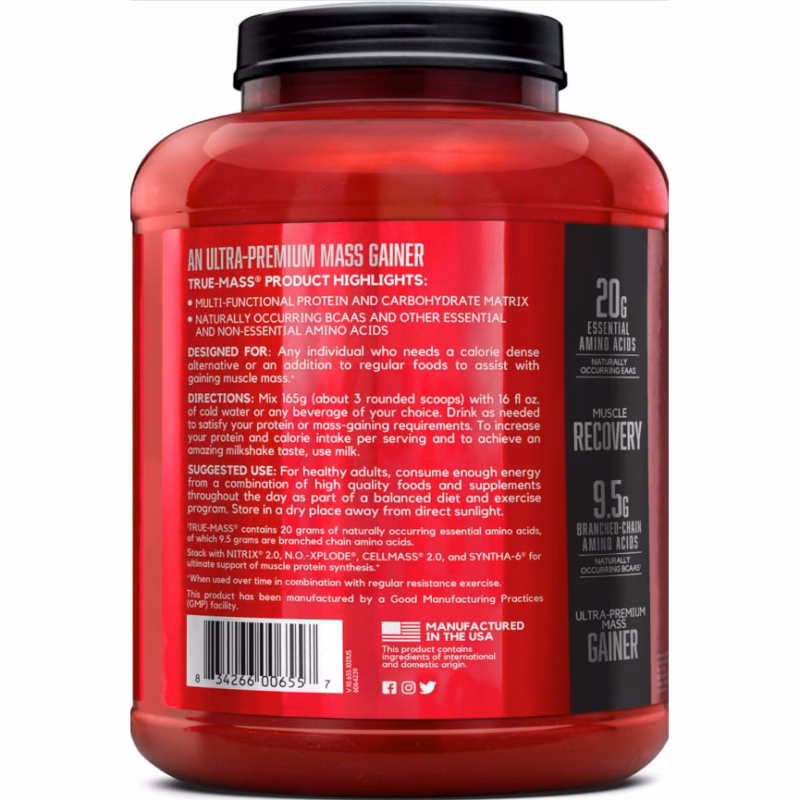 BSN True-Mass is a powerful high-calorie weight gainer designed to help hard gainers, athletes, and strength trainers build serious size and strength. Formulated with a premium blend of high-quality proteins, complex carbohydrates, healthy fats, and essential micronutrients, True-Mass delivers balanced nutrition to support lean mass gains without excessive sugar loading.