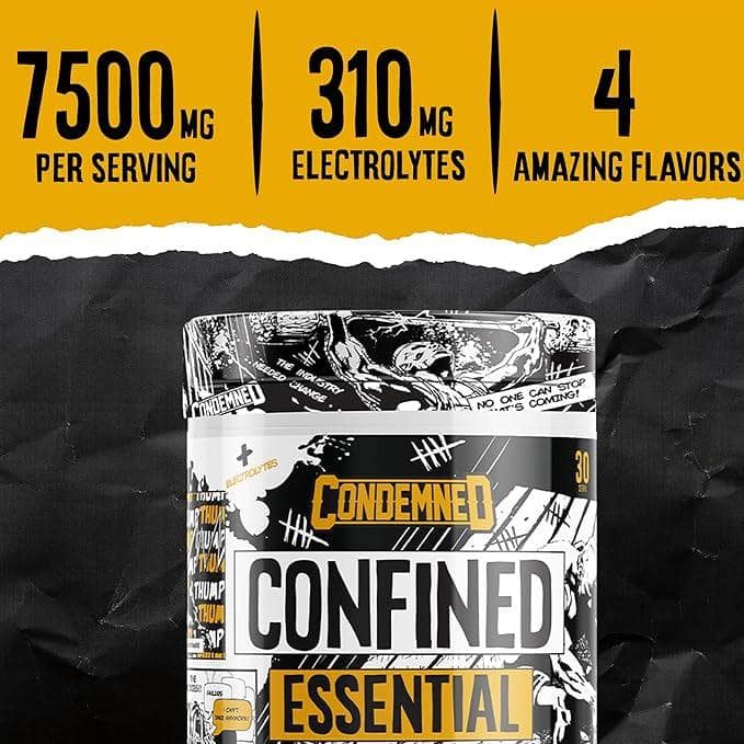 Unlike basic BCAA-only products, Confined by Condemned Labz provides a complete EAA profile – the nine essential amino acids your body cannot produce on its own – along with hydration-supporting electrolytes and performance-boosting ingredients to fuel growth, speed up recovery, and fight fatigue.