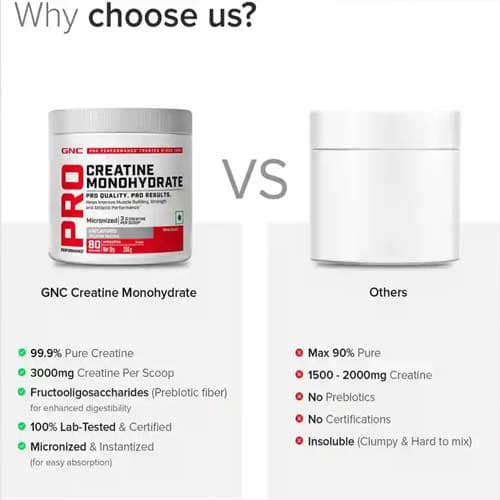 Backed by GNC’s legacy of quality and innovation, each serving provides 5 grams of pure creatine monohydrate, proven by science to improve performance in high-intensity exercise —with no fillers or artificial additives.