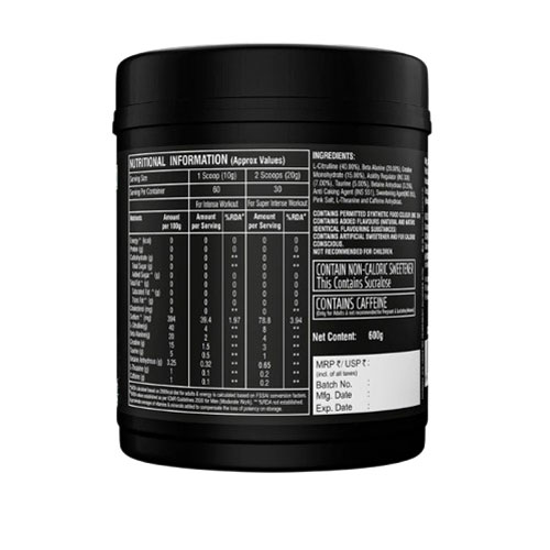 | Caffeine Anhydrous | 300mg | Immediate, powerful surge of energy |