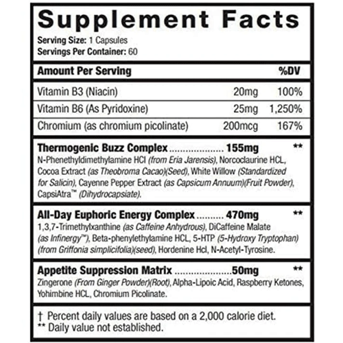 - Do NOT exceed 2 capsules per day due to the high-stimulant formula.