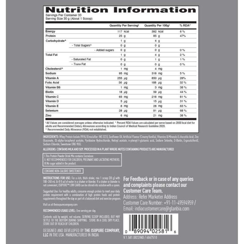 Isopure Whey Protein is a premium-quality protein supplement made from 100% whey protein isolate. It is known for its ultra-pure formulation that is low in carbohydrates and free from unnecessary fillers. Available in Low Carb and Zero Carb versions, Isopure caters to different dietary preferences, especially those following low-carb, ketogenic, or high-protein meal plans.