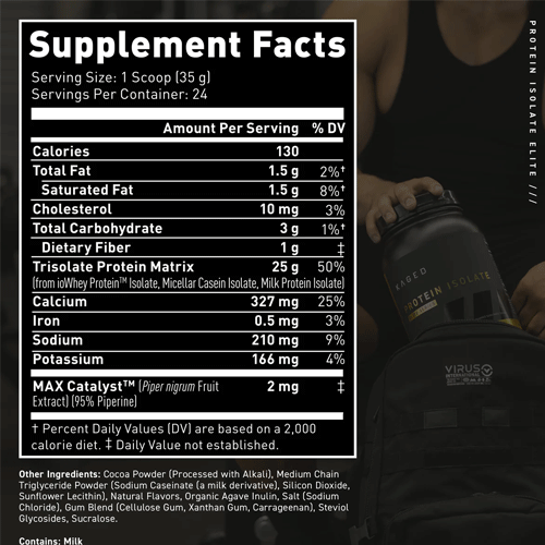 Each scoop contains 25g of premium whey isolate with minimal carbs and fat.
