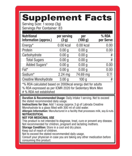 Labrada Crealean Strength Creatine Powder Unflavored 250 G