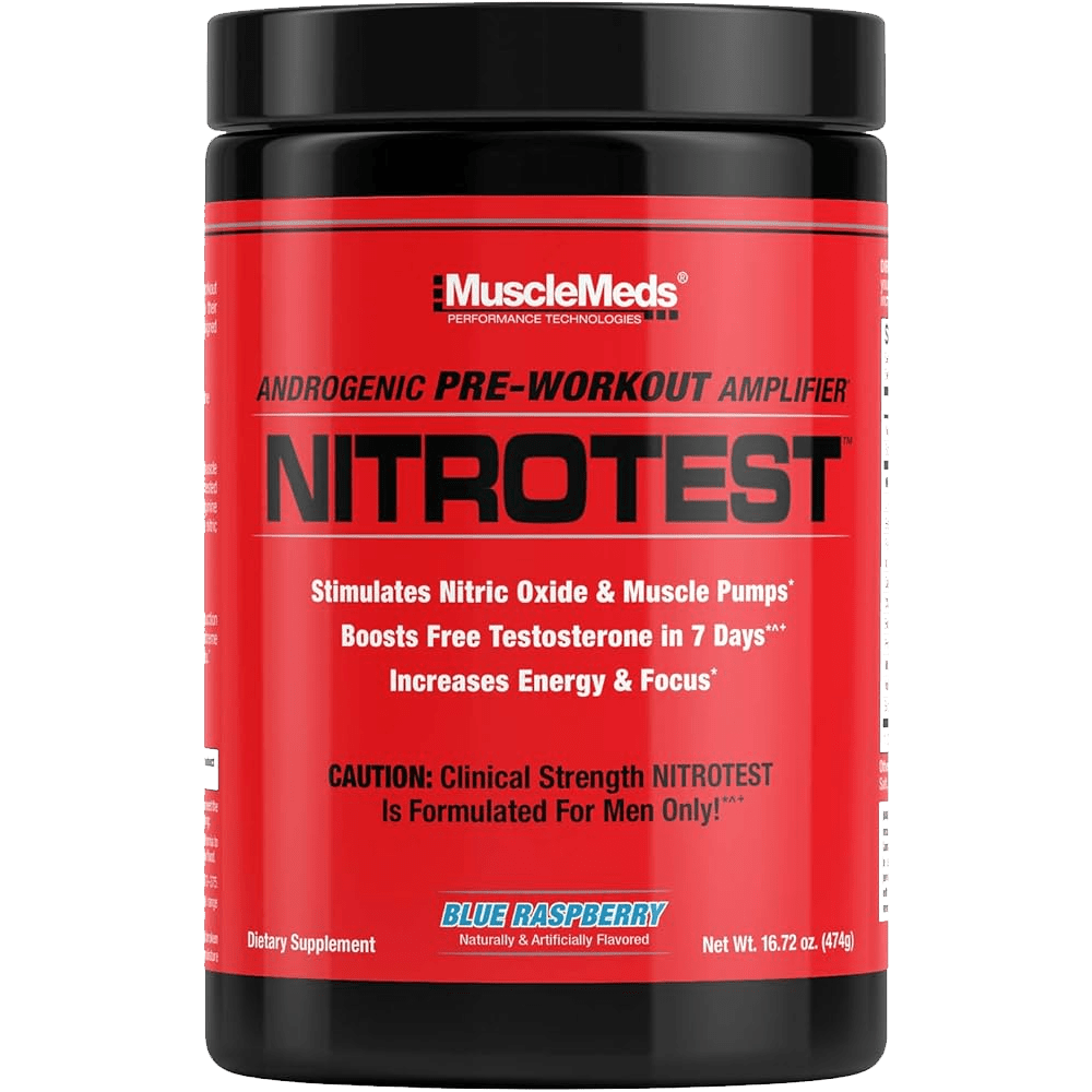 MuscleMeds NitroTest is an androgenic pre-workout amplifier that boosts testosterone and GH for better muscle growth, strength, and endurance.