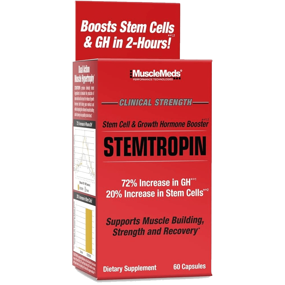 MuscleMeds Stemtropin is a revolutionary, cutting-edge supplement designed to stimulate the body’s natural production of growth hormone (GH) and activate stem cell release—two powerful processes that play critical roles in muscle recovery, strength development, anti-aging, and overall performance.