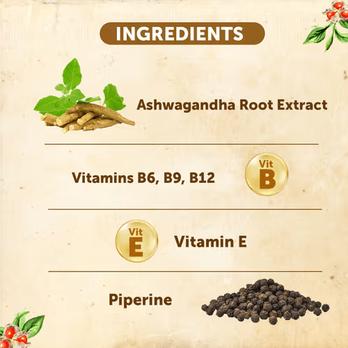 Main Ingredients: Ashwagandha Extract, Vitamin D3, Vitamin B12, Zinc