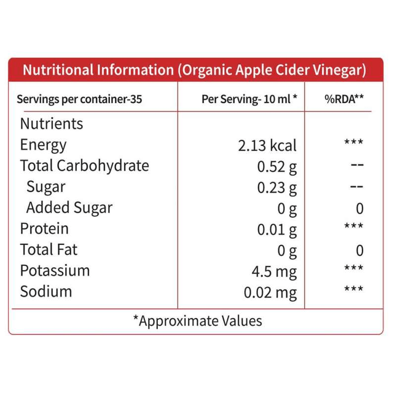 Ingredients: Raw, Unfiltered Apple Cider Vinegar with Mother (Certified Organic)