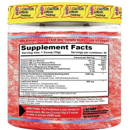 While most pre-workouts give you a short-lived buzz, Terror Labz Joker Extreme takes it further with its multi-phase stimulant matrix, nitric oxide boosters, and nootropic focus blend — delivering sustained energy, laser focus, and explosive strength for hours.