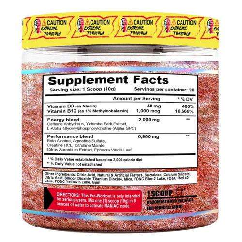 Formulated with clinically dosed ingredients, potent stimulants, and muscle volumizers, Terror Labz Maniac is your ticket to going beyond ordinary — because average just isn’t enough.