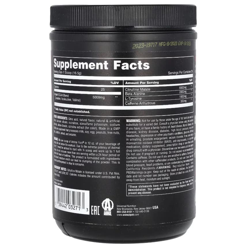 Unleash unstoppable training power with Universal Nutrition Animal Fury — a high-performance pre-workout engineered for maximum energy, focus, strength, and muscle pumps. Designed under the legendary Animal brand, Fury delivers clinically effective ingredients to fuel explosive workouts without unnecessary fillers.