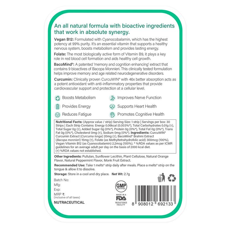 Formulated using patented Nano Rapid Technology, each strip dissolves instantly on your tongue and offers a delicious minty taste while promoting energy metabolism, cognitive performance, and red blood cell production.